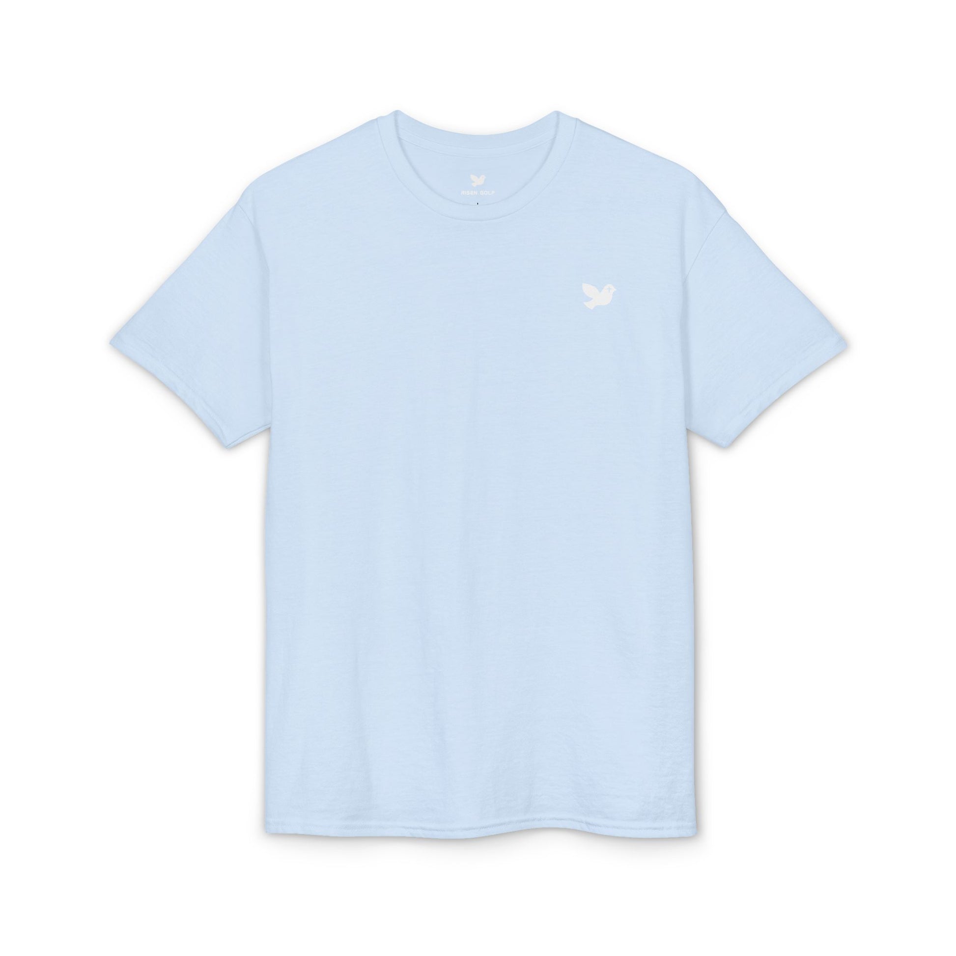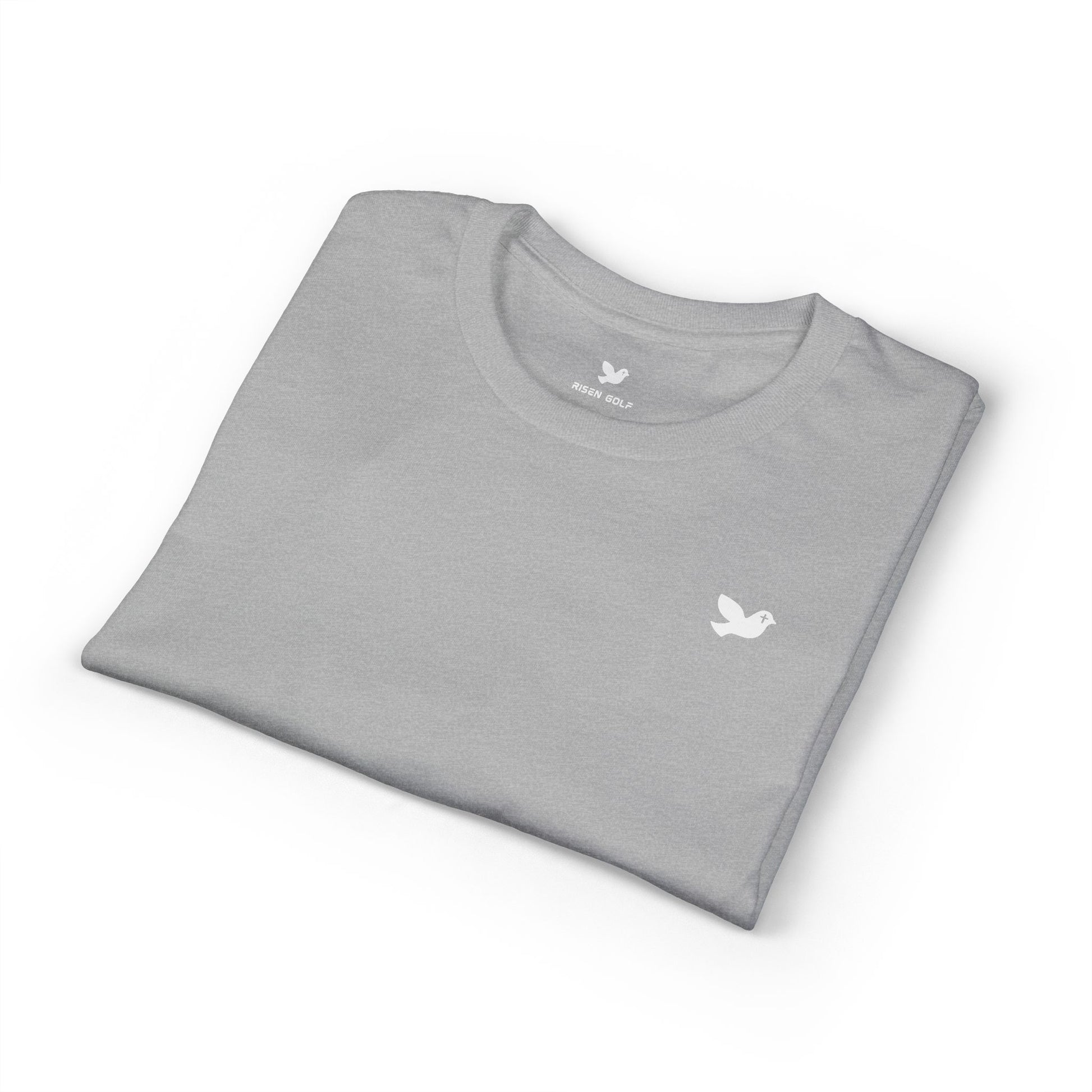 This soft, breathable tee carries a quiet, uplifting message. A small dove emblem rests over the chest while the back features the word “Risen” in gentle script — simple symbols that speak to faith, renewal, and calm confidence. The fabric drapes cleanly and resists cling thanks to moisture-wicking DryBlend® yarns, so it feels fresh during long services, sunrise gatherings, or when you want a calm reminder through the day. It layers easily under a jacket or pairs with jeans for church mornings, fellowship meetups, or reflective walks at dawn.